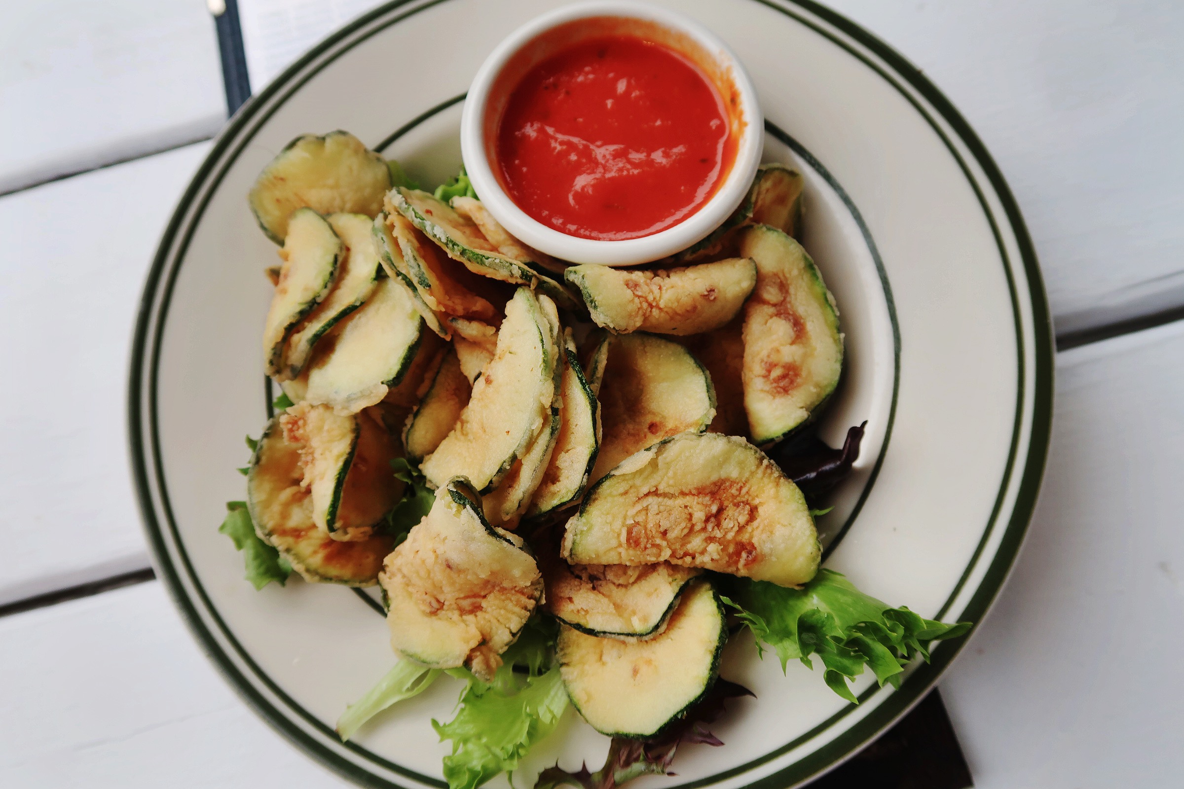 $5 meatballs, margherita pizza, zucchini chips, bruschetta, homemade fries
