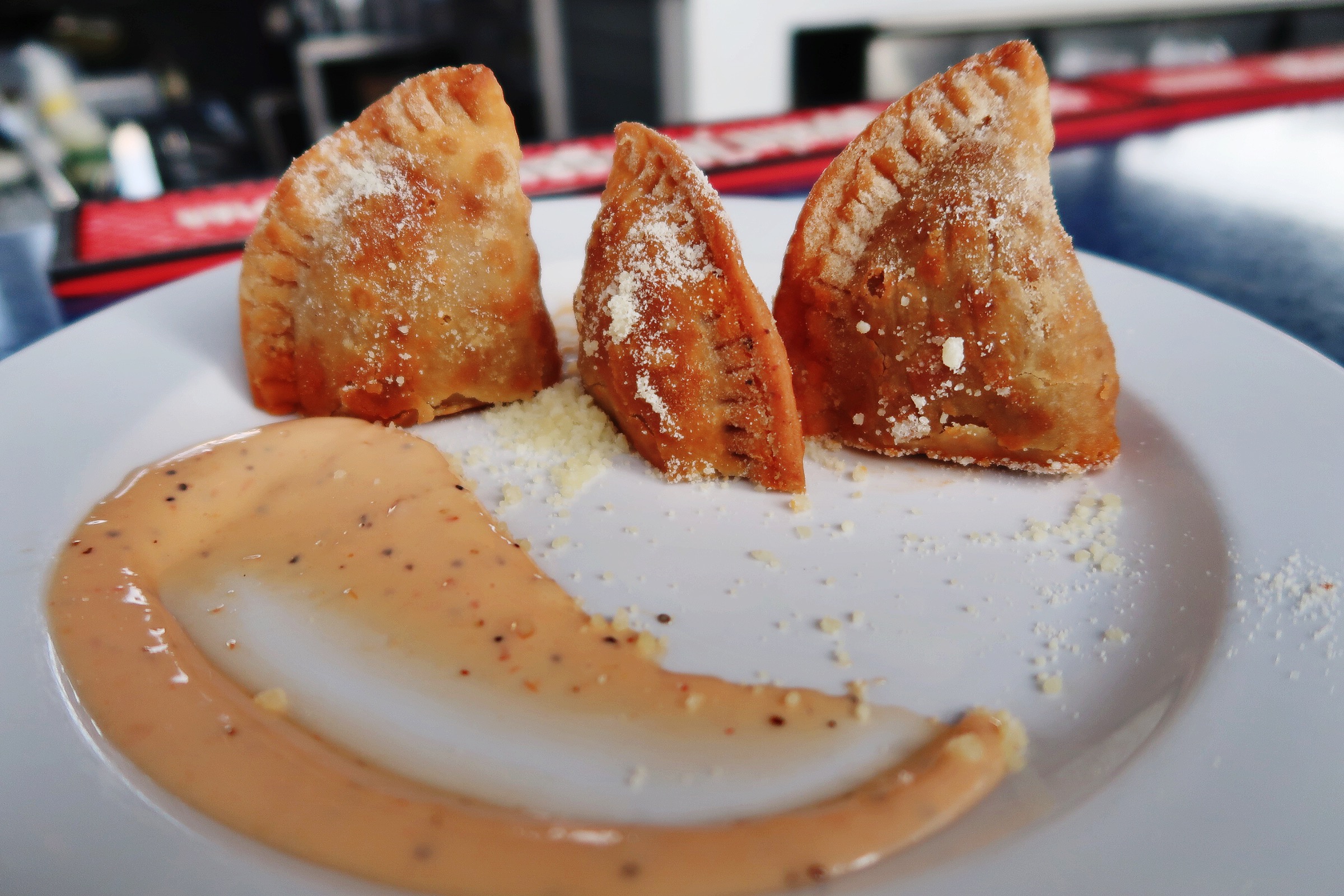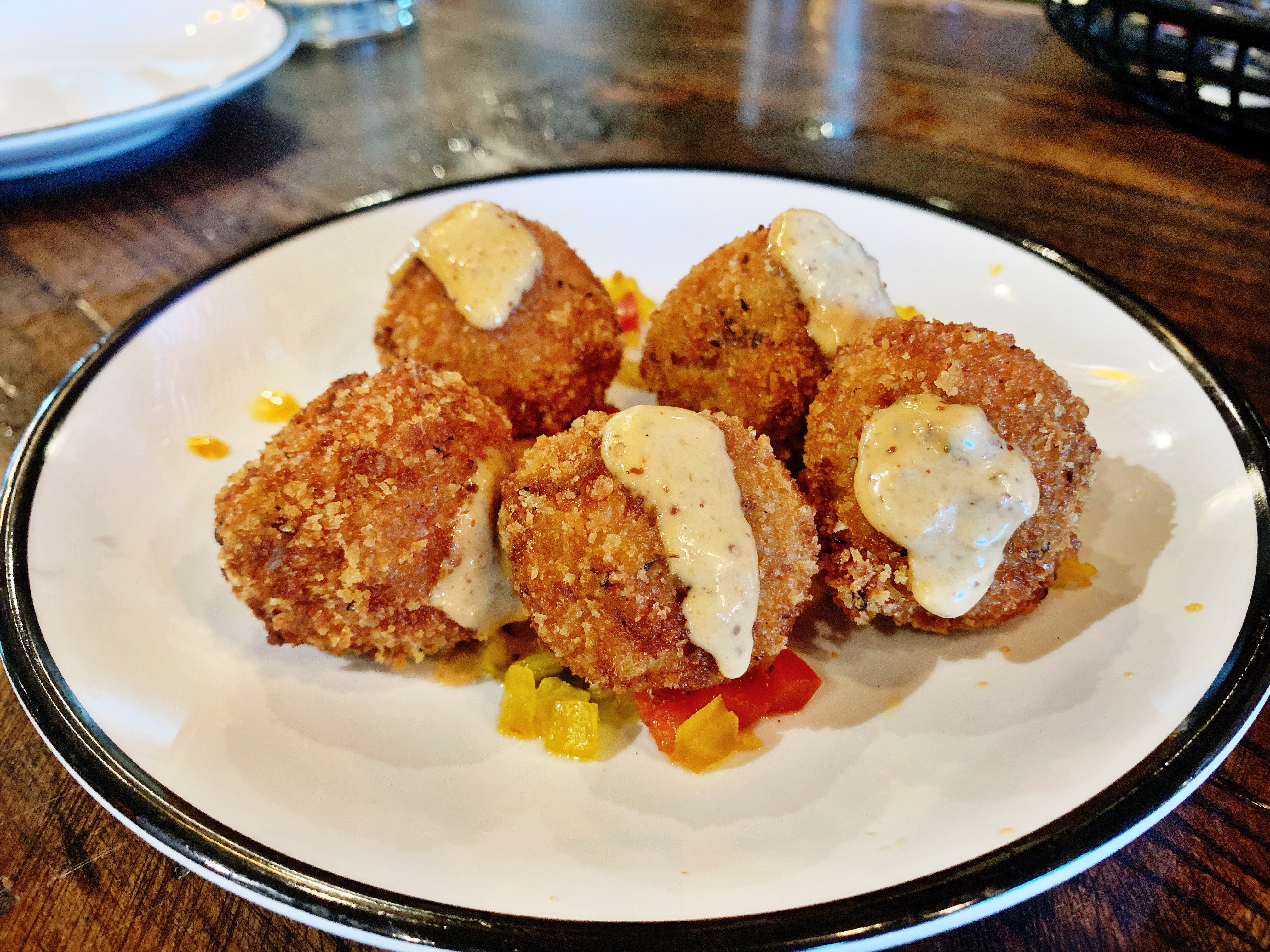$4 chips & queso, brisket taco, ribs, fried green tomatoes, durty rice balls, sliders, & wings